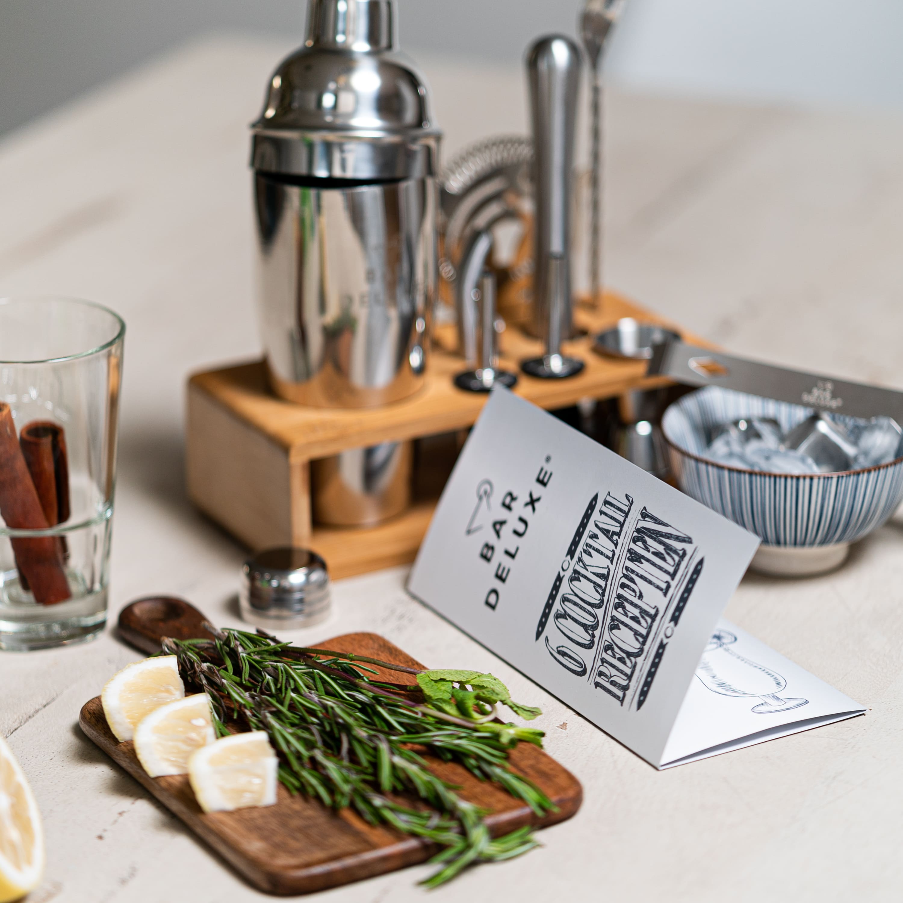 Met de bartenderset van BarDeluxe® kun je zelf heerlijke nieuwe smaken maken in de vorm van bekende cocktails zoals de Mojito, Cosmopolitan of Pina Colada. Bij deze cocktailset krijg je geheel gratis een handig receptenboek.